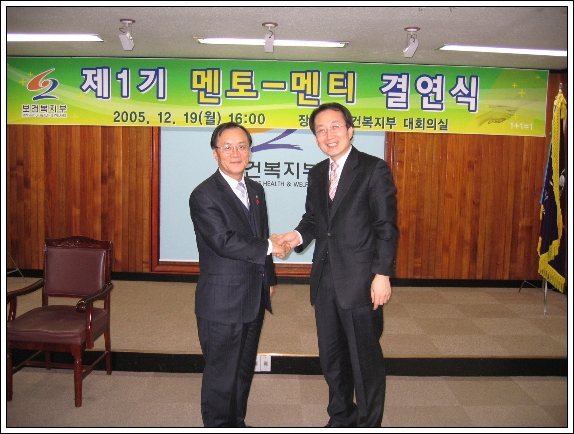 º¸°Çº¹ÁöºÎ(Àå°ü ±è±ÙÅÂ)´Â ½Å±Ô 5±Þ °øÃ¤ÀÚ 14¸í°ú º¸°ÇÁ÷½Å±ÔÀÚ3¸í¿¡ ´ëÇÏ¿© ¸ÇÅõ¸ÇÀ¸·Î ÁöµµÇÒ ¸ð¹üÀûÀÎ ¼±¹è¸¦ ¼±¹ß(¸àÅä)ÇÏ¿© ½Å±Ô°ø¹«¿ø(¸àƼ)°ú 1:1·Î °á¿¬ÇÏ´Â "Á¦1±â ¸àÅä-¸àƼ °á¿¬½Ä"À» '05³â 12¿ù 19ÀÏ(¿ù)¿¡ º¹ÁöºÎ ´ëȸÀǽǿ¡¼ °³ÃÖÇÑ´Ù°í ¹àÇû´Ù.